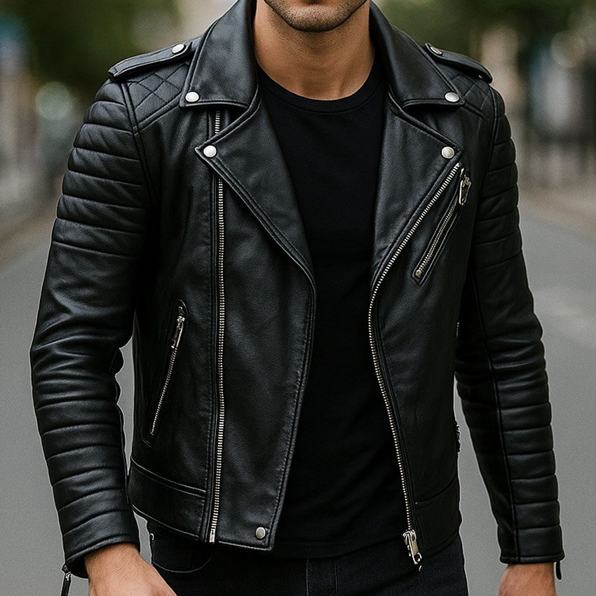 Men’s Real Leather Jacket Premium Black Slim Fit Biker Outerwear | Genuine Leather Motorcycle Jacket for Men