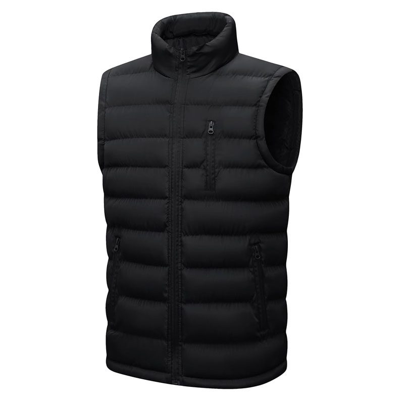 Men’s Black Winter Puffer Vest Warm Padded Quilted Sleeveless Jacket with Zipper & Pockets, Windproof Outdoor Outerwear