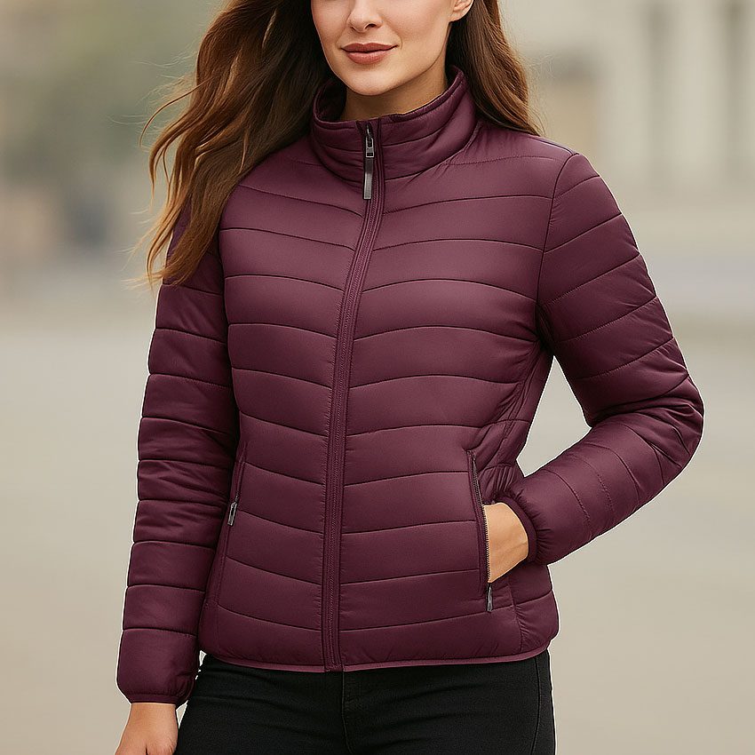 Women’s Maroon Puffer Jacket Lightweight Insulated Quilted Winter Coat for Travel & Outdoor