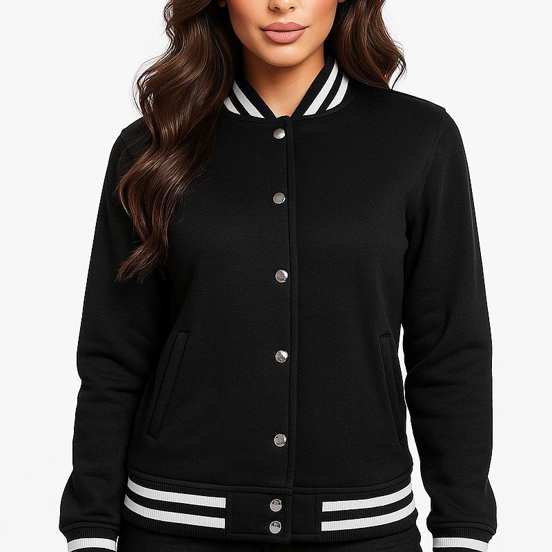 Women’s Black Varsity Jacket Classic Letterman Bomber Baseball Jacket | Trendy College & Streetwear Outerwear