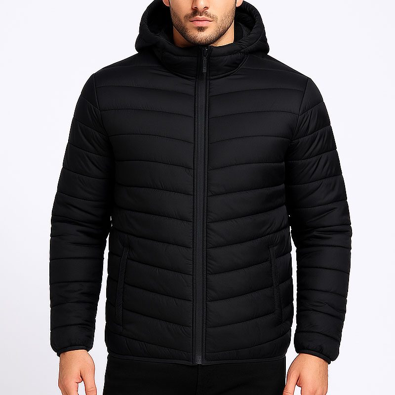 Men’s Black Packable Puffer Jacket Lightweight Insulated Winter Coat for Ski, Snow, Hiking & Travel