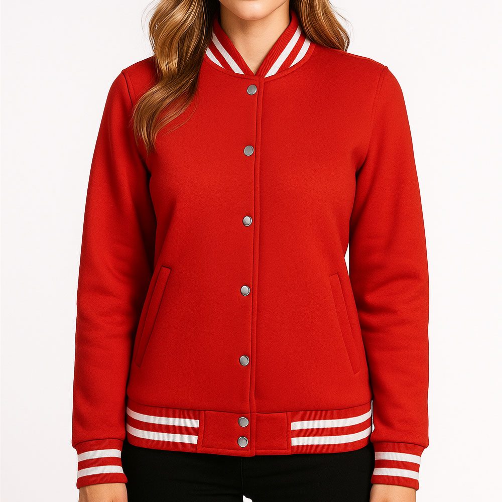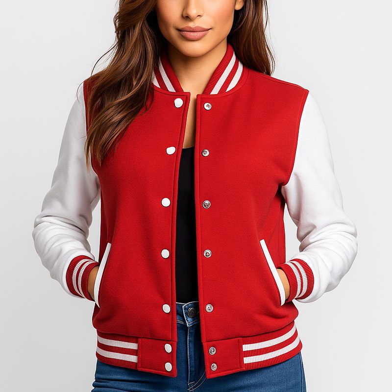 Women’s Red and White Varsity Jacket High School Letterman Bomber Style Baseball Jacket for Women | Lightweight Outerwear