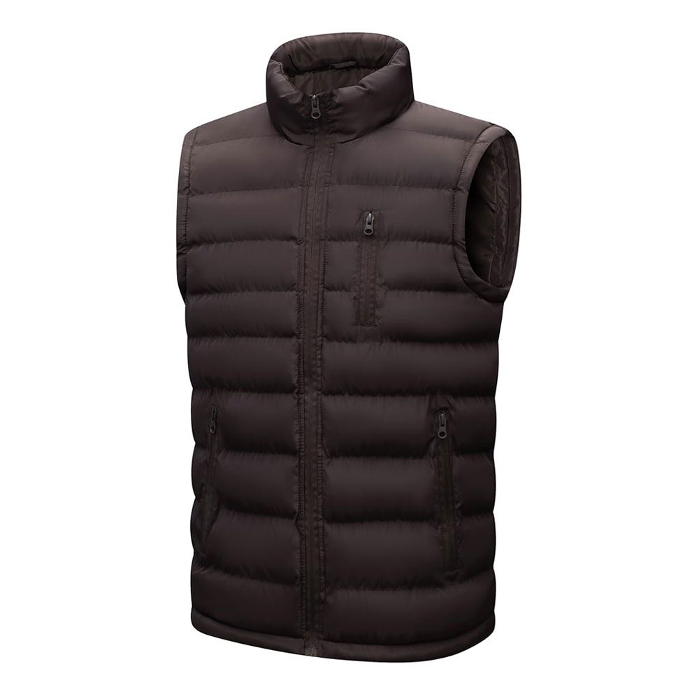 Men’s Brown Puffer Vest Quilted Sleeveless Winter Jacket with Zipper & Pockets