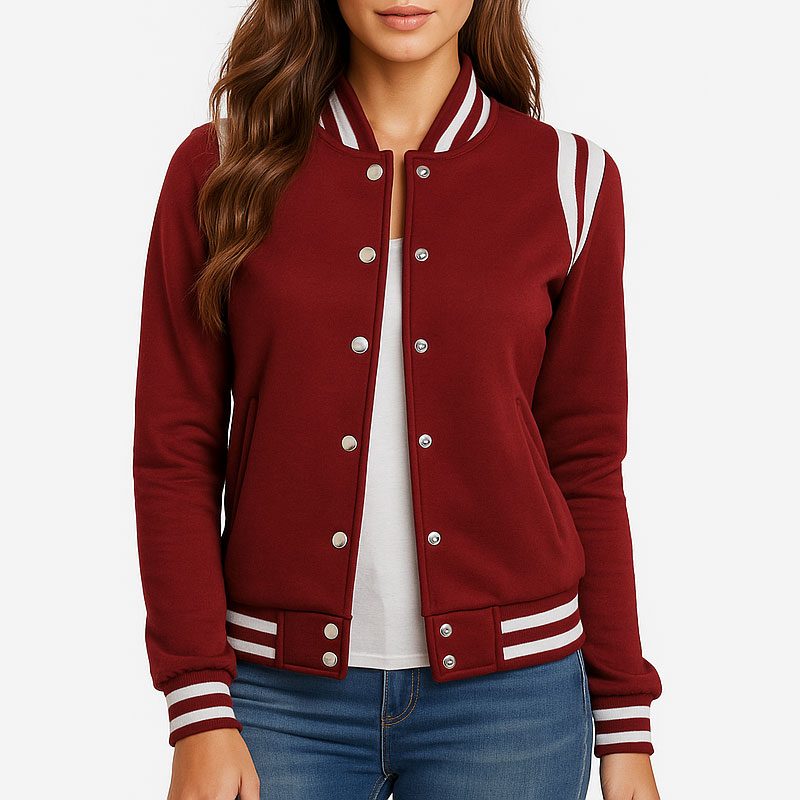Women’s Maroon and White Varsity Jacket Classic High School Letterman Bomber Baseball Jacket for Women | Lightweight Outerwear