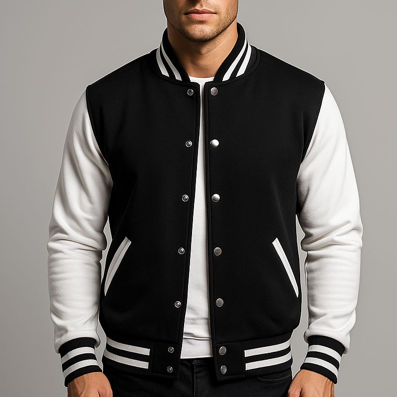 Men’s Varsity Baseball Jacket Black White Letterman College Bomber Cotton Blend Coat