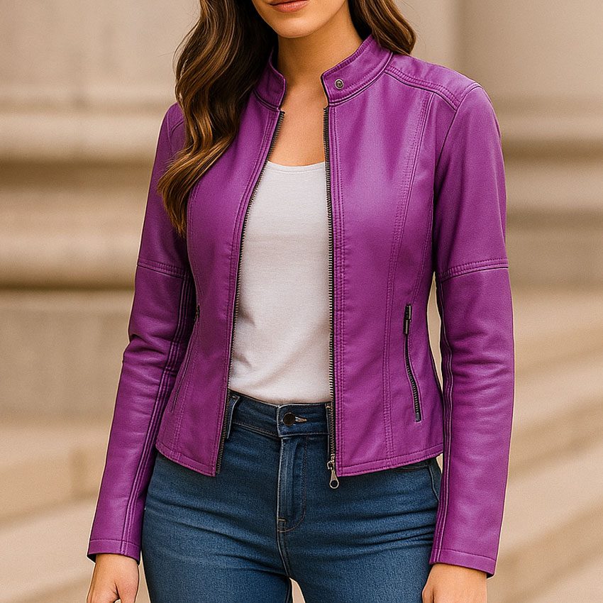 Women’s Purple Faux Leather Jacket Slim Fit Moto Biker Style Lightweight Outerwear for Women | Leather Jacket Women Fashion