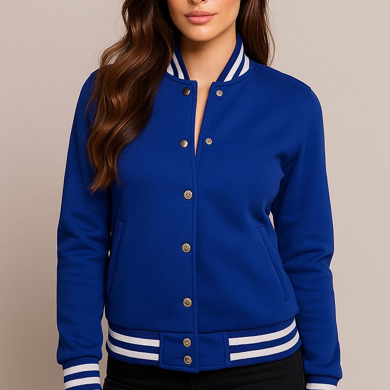 Women’s Blue Varsity Jacket Classic Letterman Bomber Baseball Jacket | Trendy College & Streetwear Outerwear