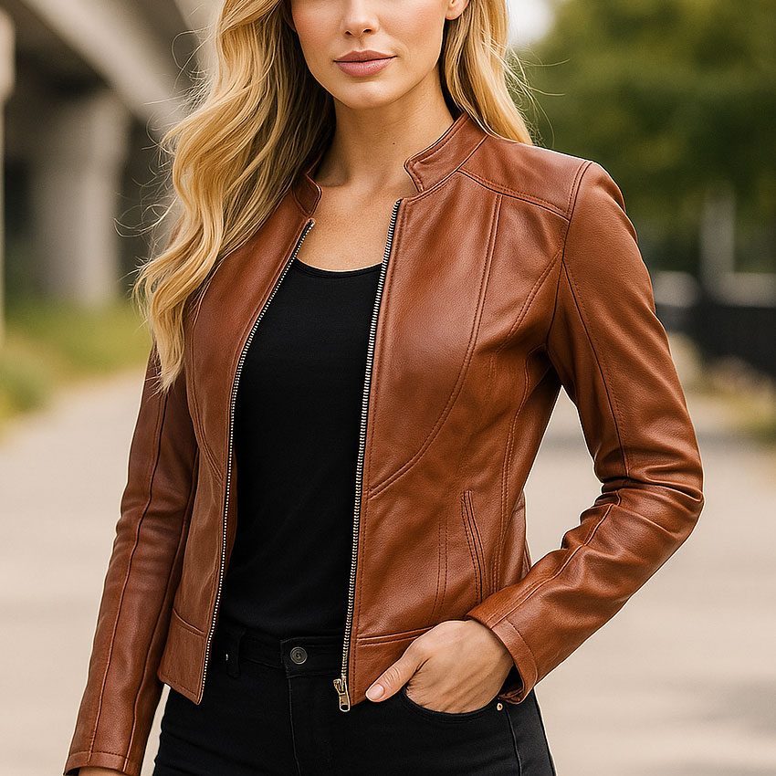 Women’s Real Lambskin Brown Leather Jacket Premium Motorcycle Biker Coat with Cafe Racer Style, Zipper Closure & Soft Inner Lining Classic Slim Fit Leather Outerwear for Casual & Party Wear
