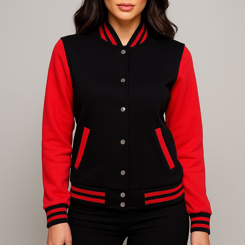 Women’s Black and Red Varsity Jacket Stylish Letterman Baseball Bomber | Lightweight College & Streetwear Outerwear